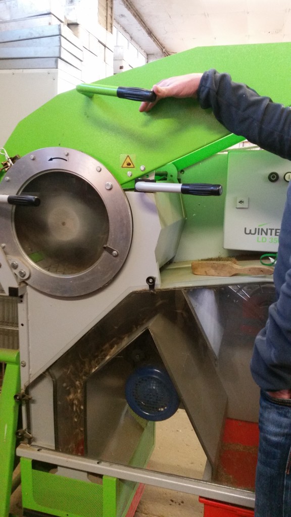 The group also viewed spelt de-hulling, which is an additional step to seed cleaning to obtain individual grains from a spelt spikelet. For the field work, NEFG uses a thresher and sends spelt samples through multiple times to obtain grain samples that can be used in further processing.